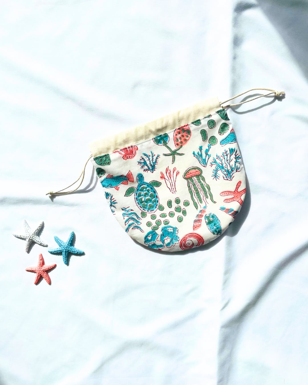 【まぁるい巾着袋】海の生き物柄